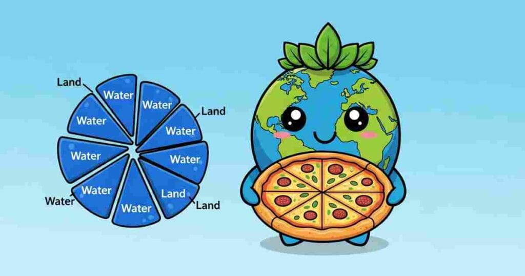 If Earth was a pizza cut into 10 slices, 7 slices would be water, and only 3 slices would be land.