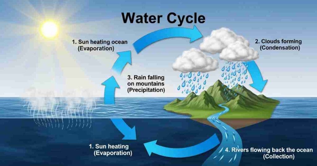 4. Collection (The Return): The rain creates rivers. The rivers flow back into the ocean. And the cycle starts all over again!