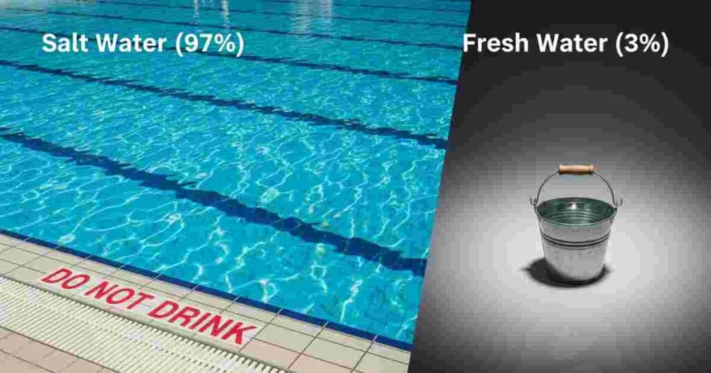 • 97 cups are Salty Ocean Water. (You cannot drink this).
